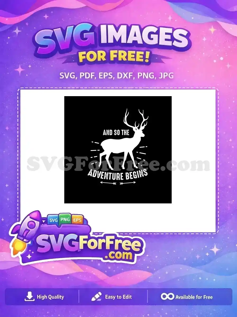 Outdoor adventure graphic: ‘ADVENTURE BEGINS’ text set against a majestic stag/deer silhouette, free for personal use.