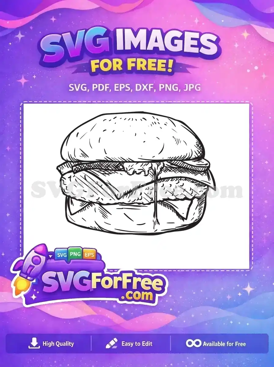 Free Detailed Burger Free Line Art Food Free SVG 4 – Instant Download
