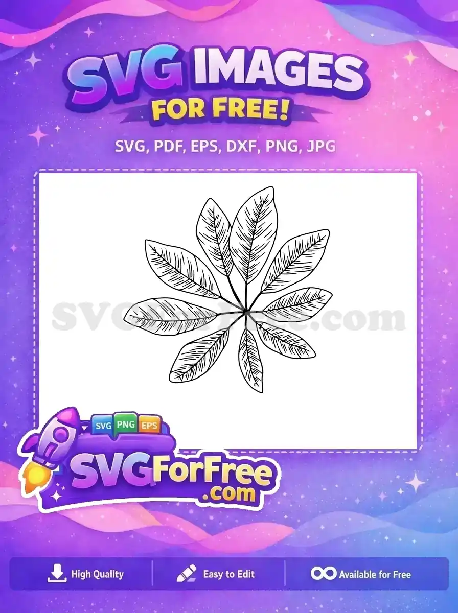 A detailed line drawing of a Schefflera (umbrella plant) leaf. A free, realistic botanical sketch.