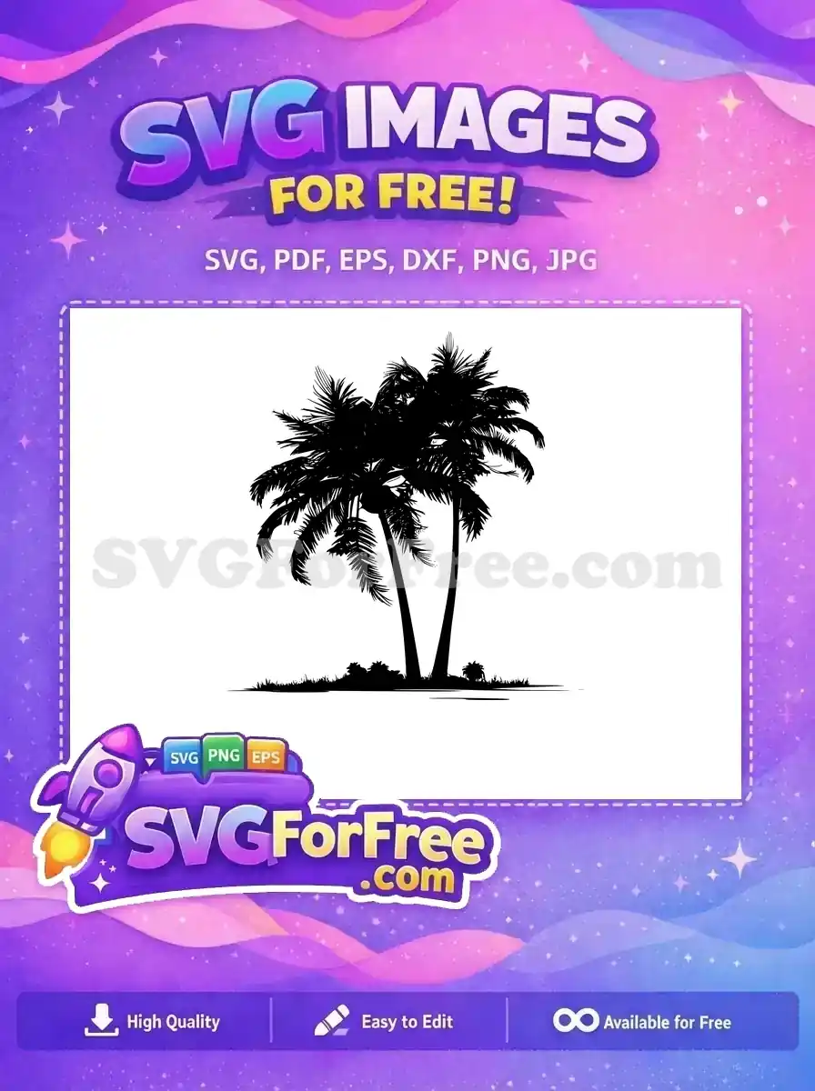 Free Detailed Palm Trees Free Tropical Island Silhouette Free SVG – Instant Download