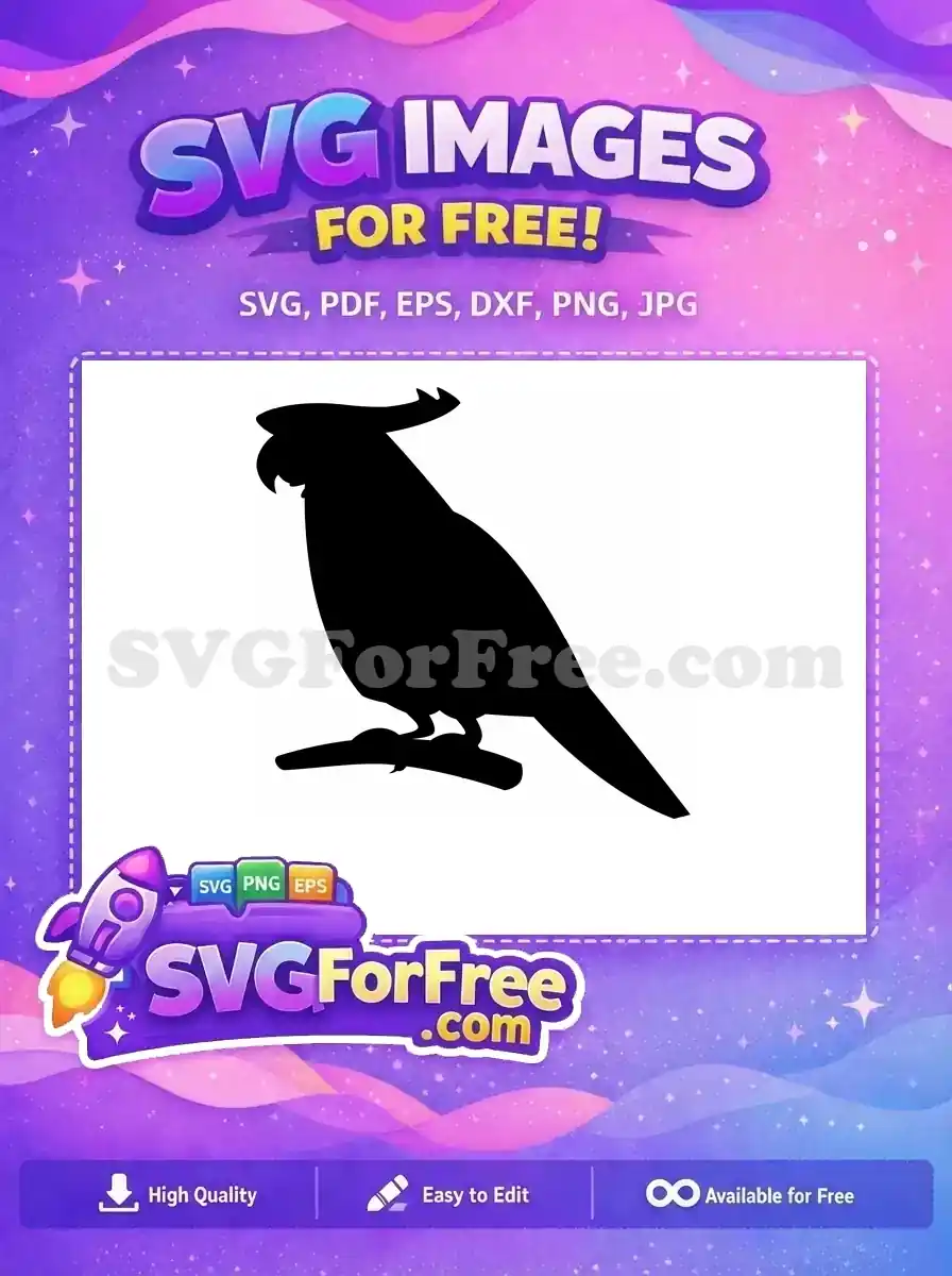 Cockatoo silhouette leaning forward on a branch, available as a complimentary vector file.