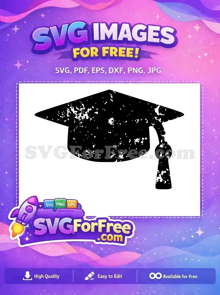 Download this free distressed graduation cap SVG, perfect for celebrating academic milestones. A versatile, high-quality design for all your projects!