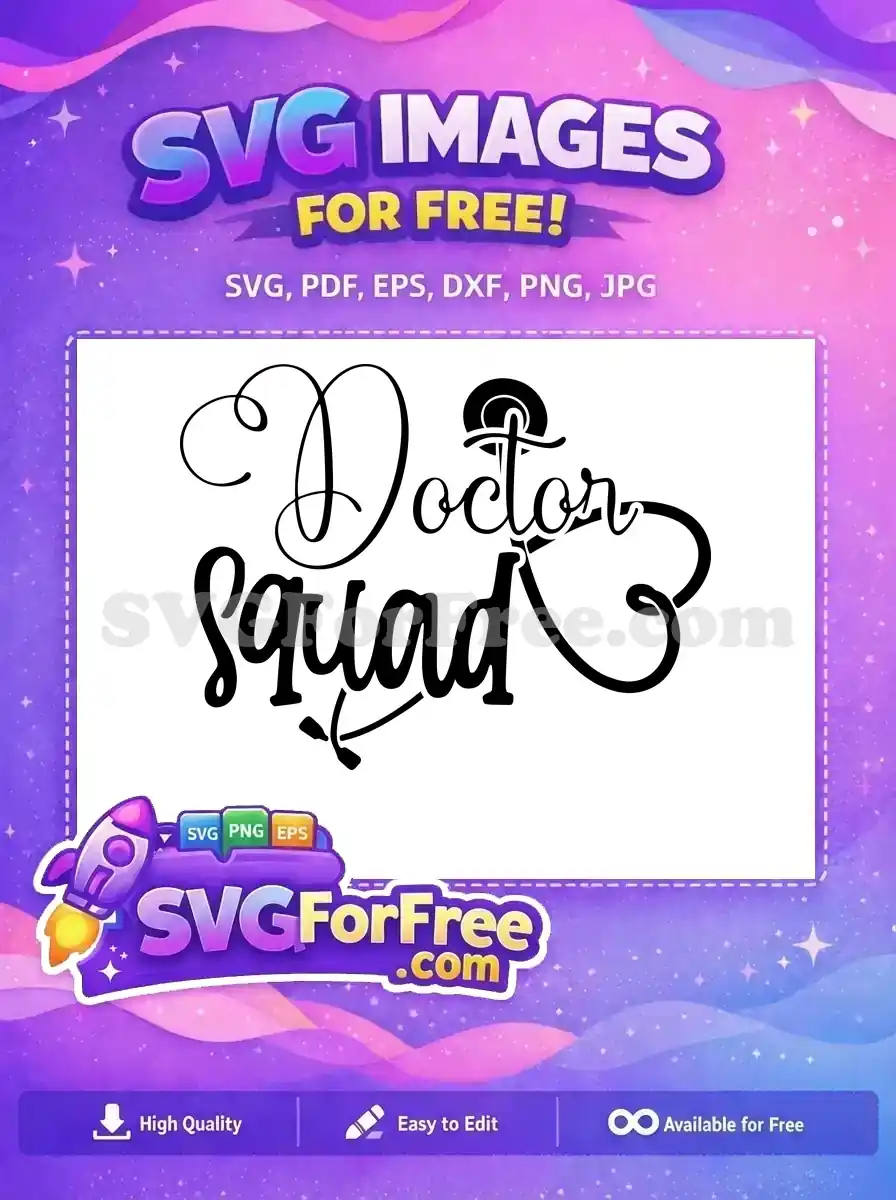 Stylish ‘Doctor Squad’ text with a heart-shaped stethoscope, a free graphic download.