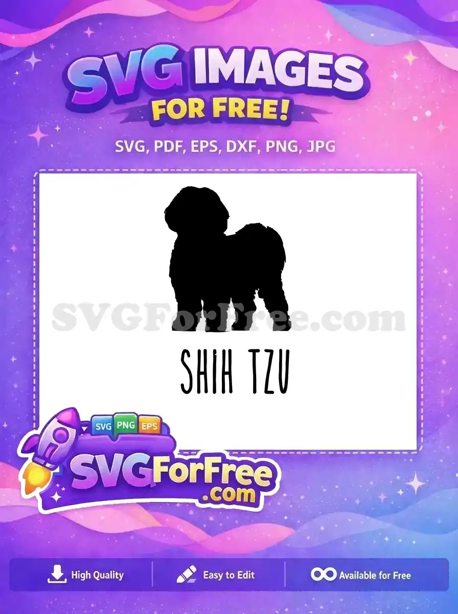 A free silhouette of a charming Shih Tzu, showing its long flowing coat, topknot, and proud carriage.
