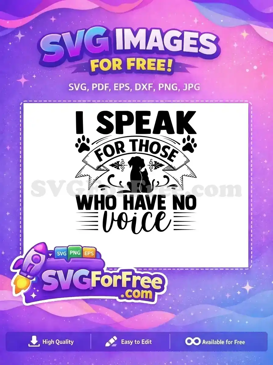 Advocacy quote ‘I speak for those who have no voice’ with paw prints. A no-cost graphic for animal lovers.