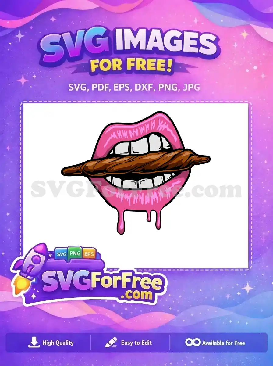 Edgy pink lips biting a smoking cigar, a bold free vector for streetwear.