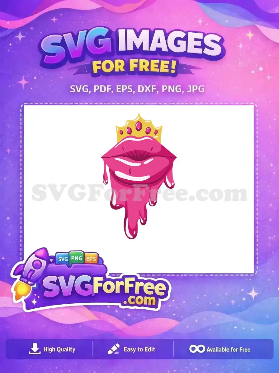 Discover this free design: vibrant, dripping pink lips with a golden crown, offering a sassy and unique appeal for your projects. Get this captivating free SVG now!