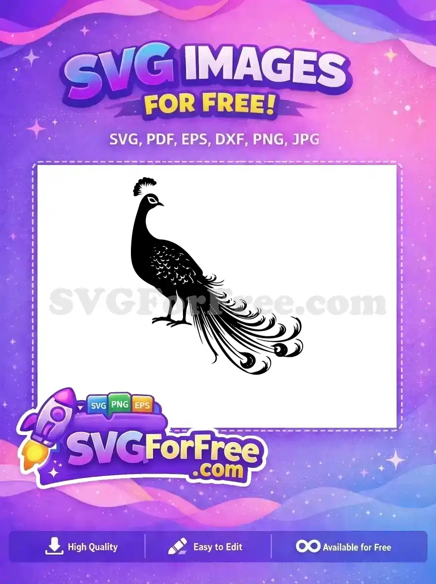 Free Elegant Crest Free Detailed Tail Peacock Silhouette Free SVG 1 – Instant Download