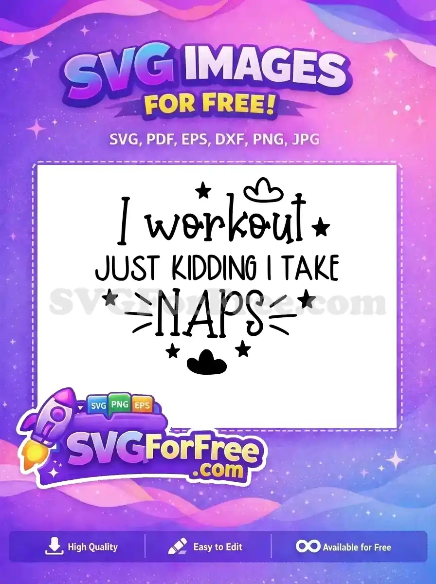 Humorous ‘I workout JUST KIDDING I TAKE NAPS’ with stars, a free graphic.