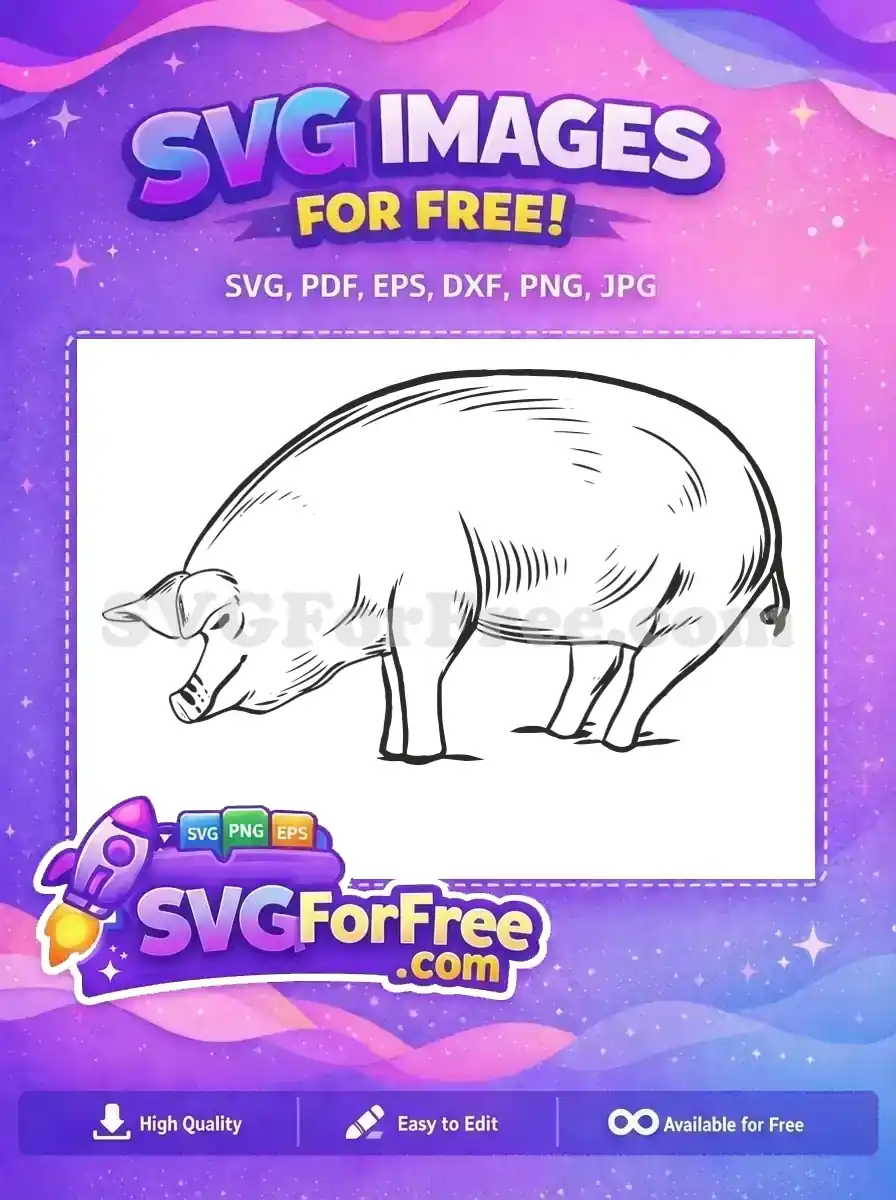 Free Farm Animal Pig Free Black Outline Farm Free SVG – Instant Download
