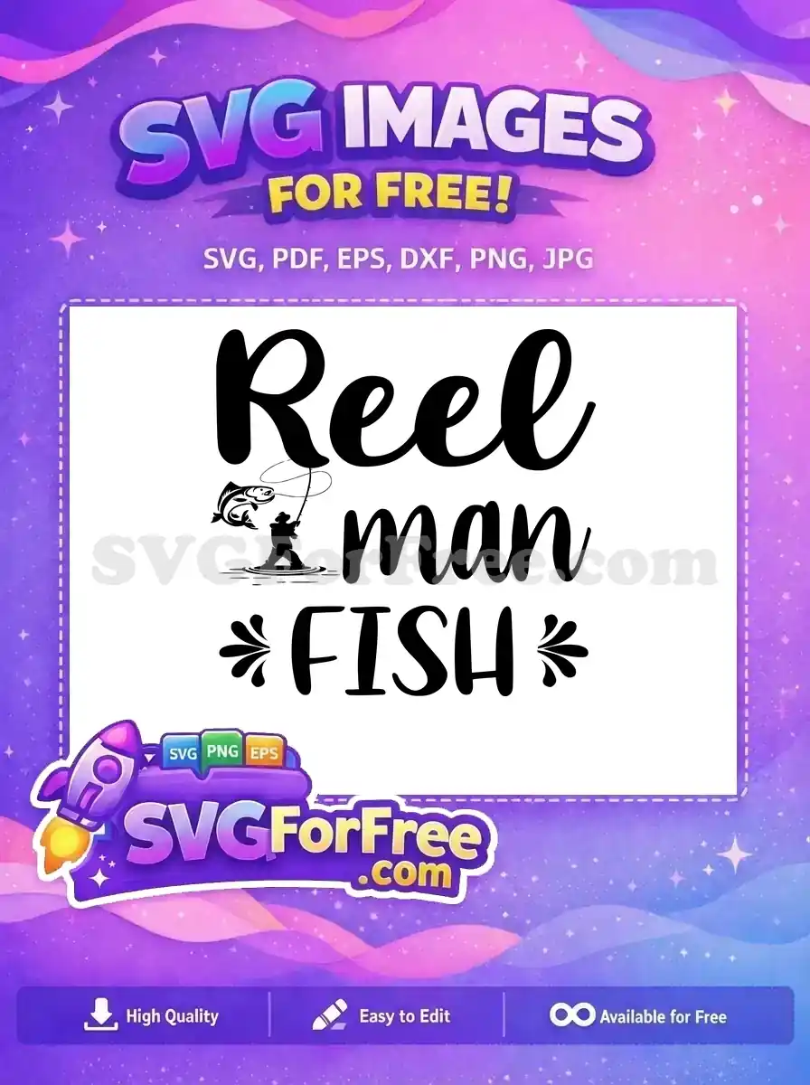 A clever “Reel Man” pun using a fishing rod for the letter ‘L’ in ‘Reel’. A free and masculine design.