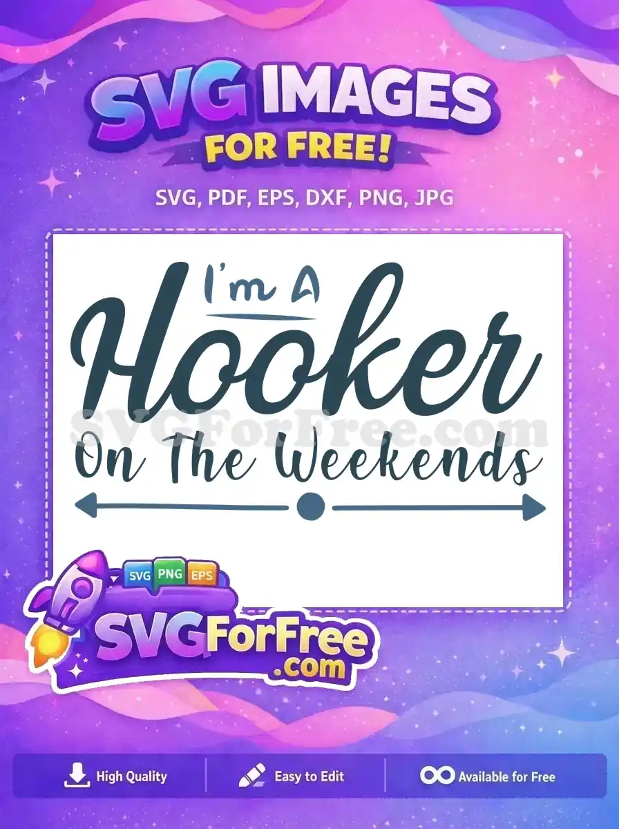 Witty ‘I’m A Hooker On The Weekends’ text with a hook icon, provided as a free funny SVG download.