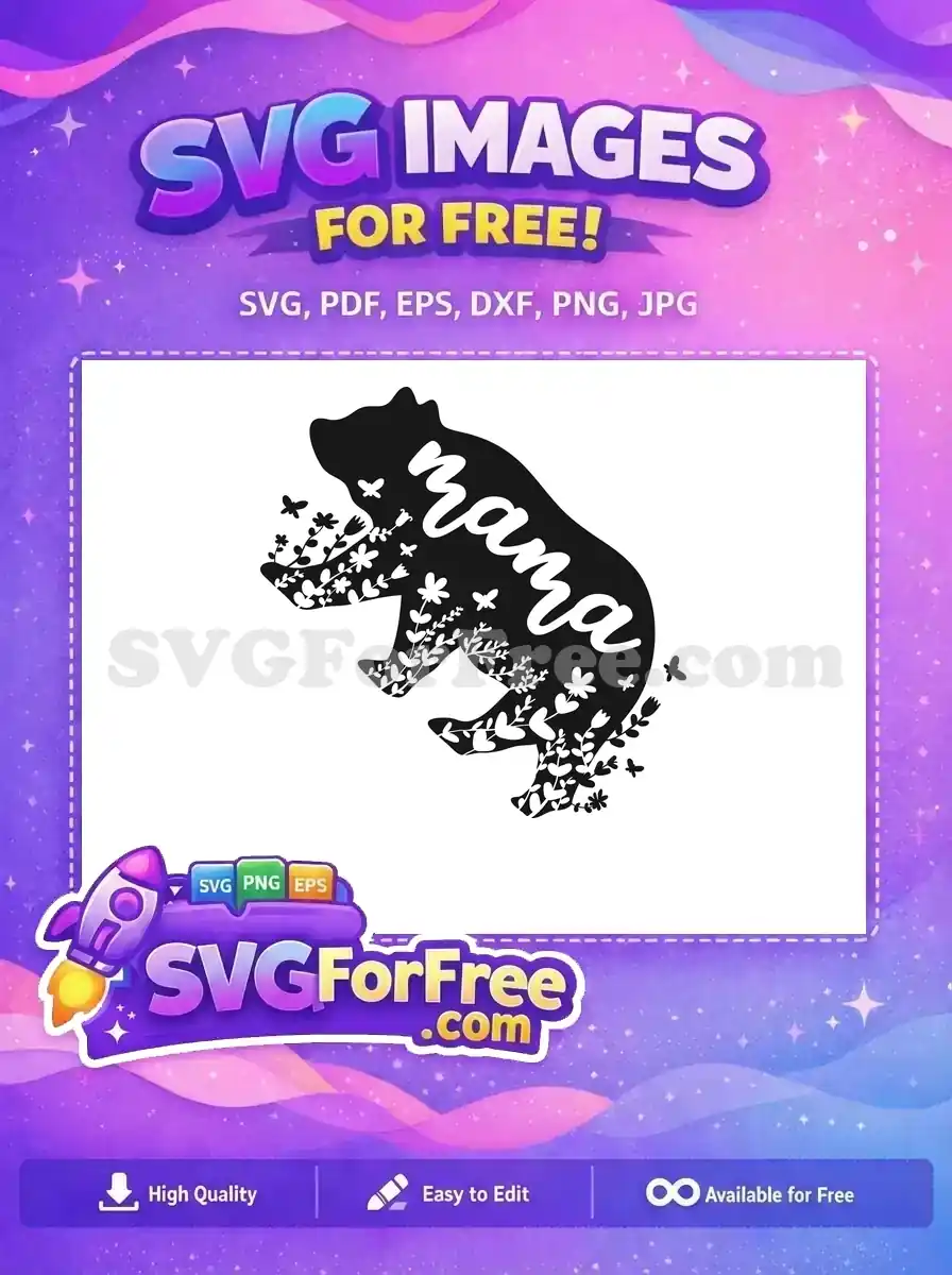 Free Floral Mama Bear Free Butterflies Mothers Day Free SVG – Instant Download