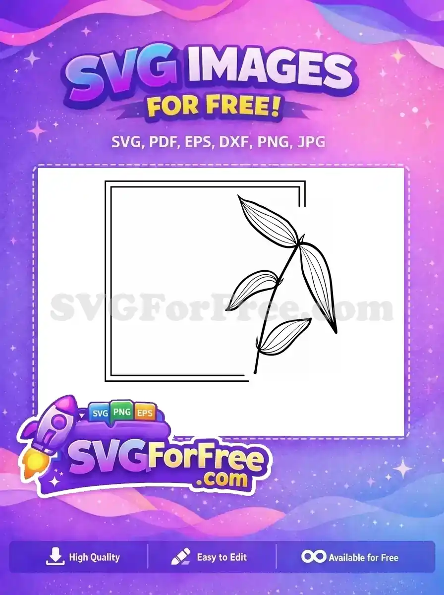 An elegant free square frame is accented by a pair of detailed, veined leaves in the top right corner.
