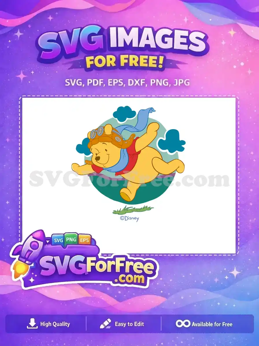 Free Flying Aviator Pooh Free Blue Scarf Winnie The Pooh Free SVG – Instant Download