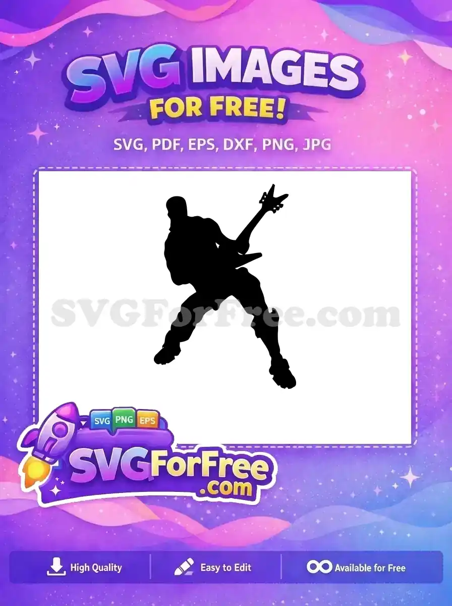 A dynamic silhouette of a character playing an electric guitar in a rockstar pose, a free vector file.