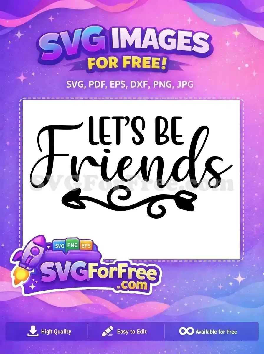 An ornate “Let’s be friends” text design in a script font with decorative swirls. A beautiful, free vector.