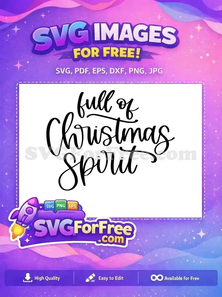 Cheery ‘full of Christmas Spirit’ text in flowing script, free for holiday crafts.