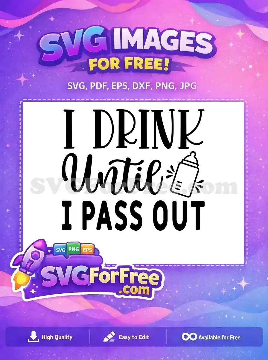 Grab this free, humorous SVG design perfect for new parents! A witty ‘I Drink Until I Pass Out’ phrase with a baby bottle. A must-have free design for your crafting projects!