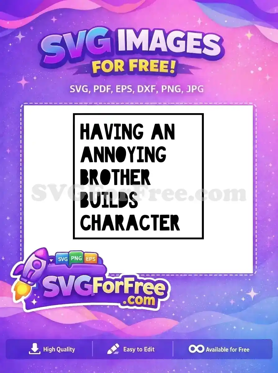 Boxed text humor ‘Having an annoying brother builds character’ free SVG.