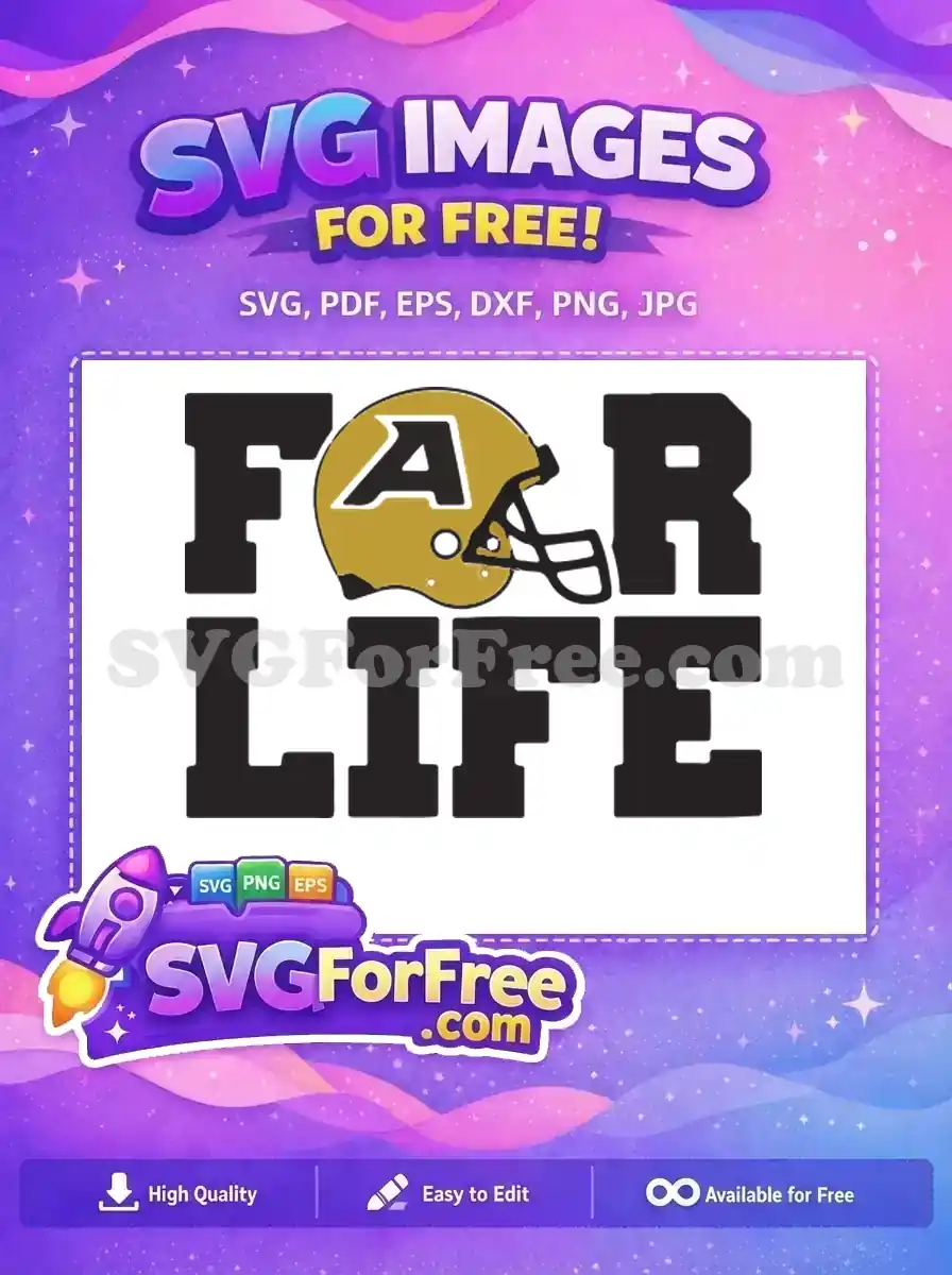 A ‘FOR LIFE’ fan graphic with a generic football helmet. A free-to-use vector for any football fan.