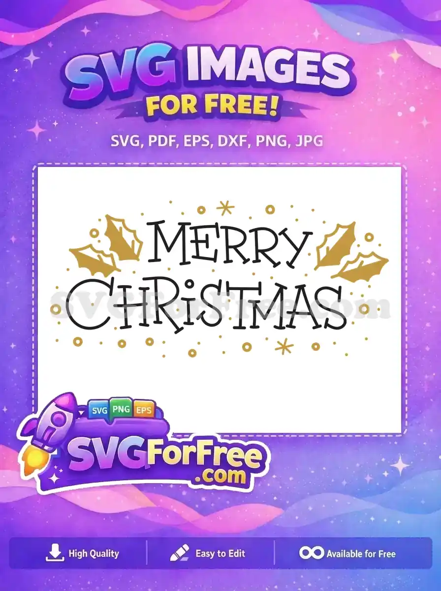 Free Golden Holly Free Merry Christmas Holiday Free SVG – Instant Download
