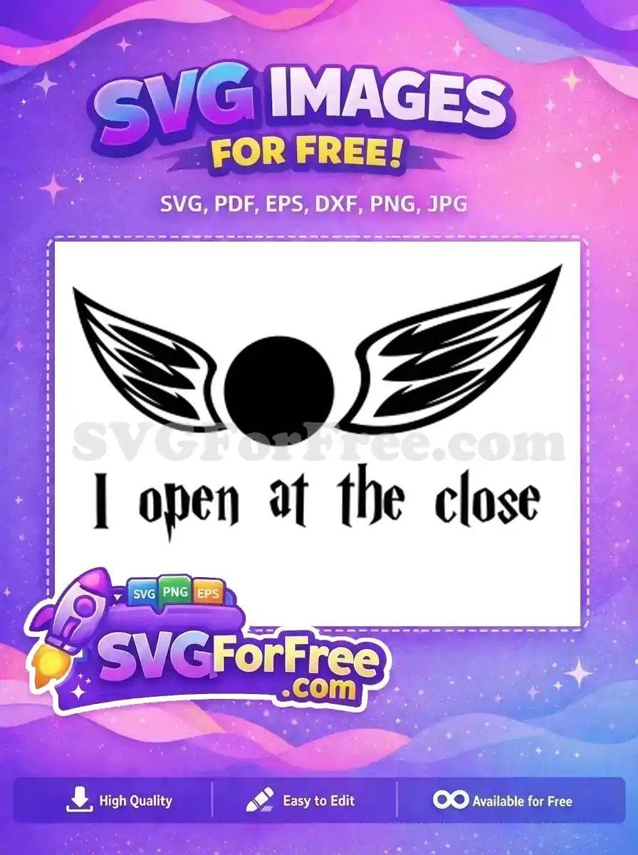 Golden Snitch graphic with the phrase ‘I open at the close’ available for free.