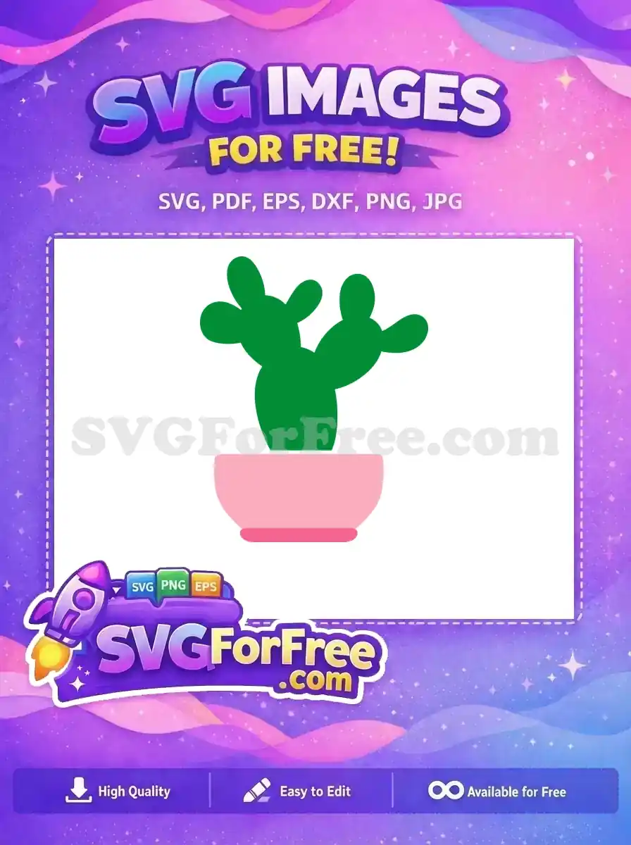 Free Green Cactus Plant Free Pink Pot Cartoon Clipart Free SVG – Instant Download