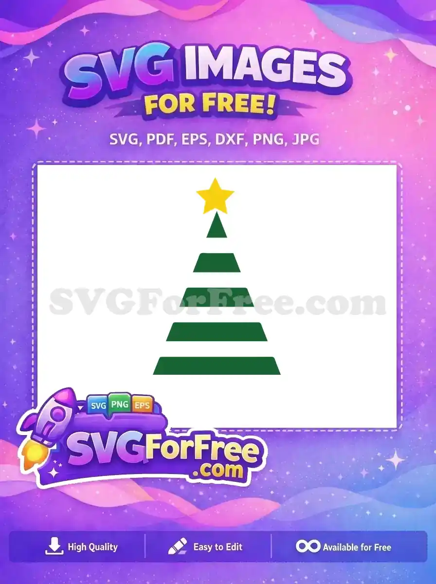 A minimalist Christmas tree made of horizontal green stripes of decreasing width, topped with a star. Free file.