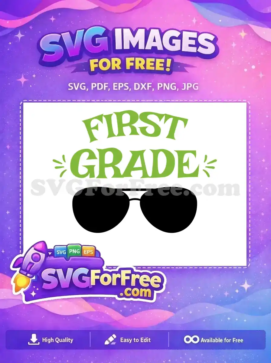Free Green First Grade Free Black Sunglasses Back To School Free SVG – Instant Download