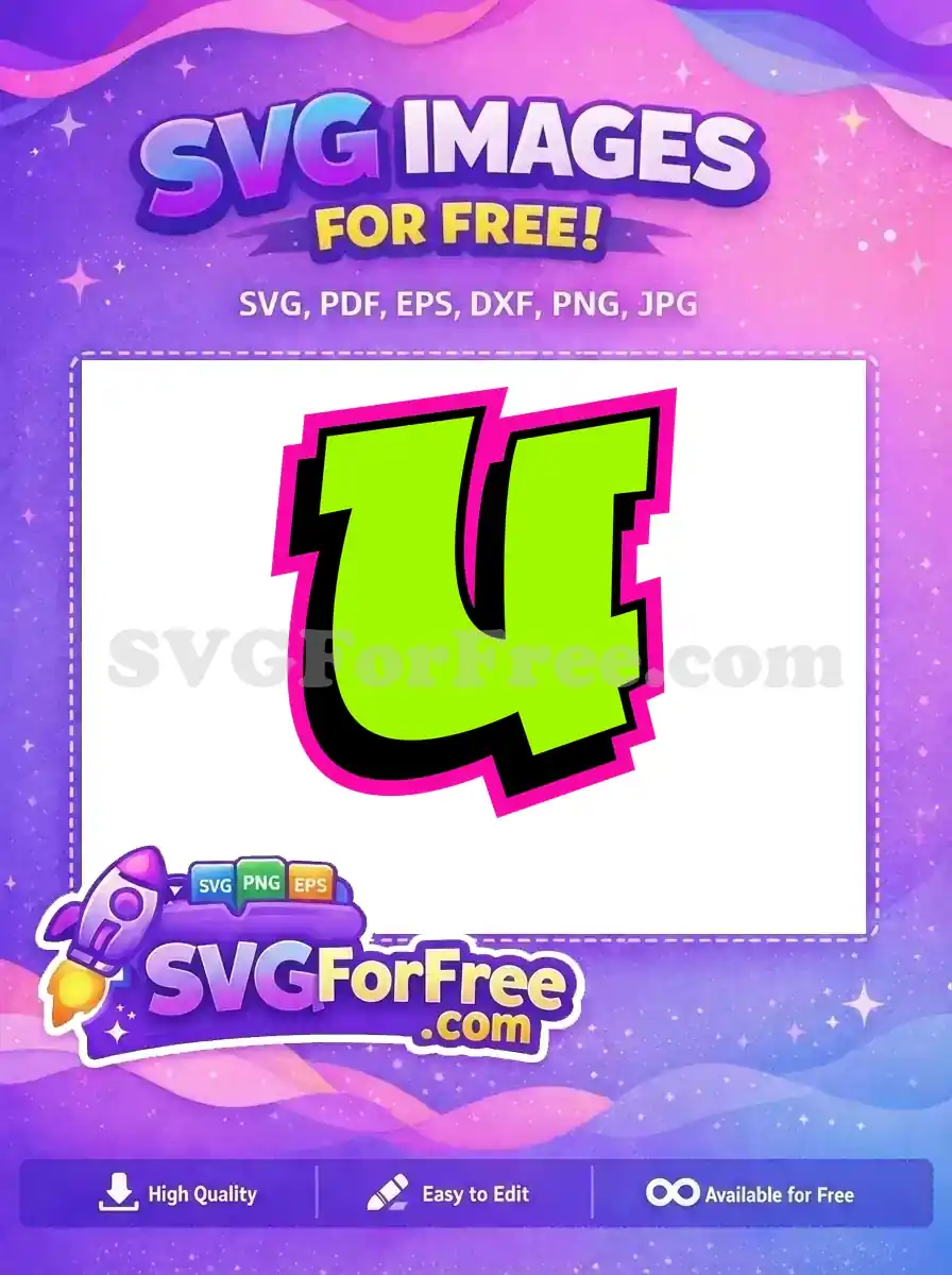A stylized, rounded graffiti ‘U’ in lime green with pink and black details, available for free download.