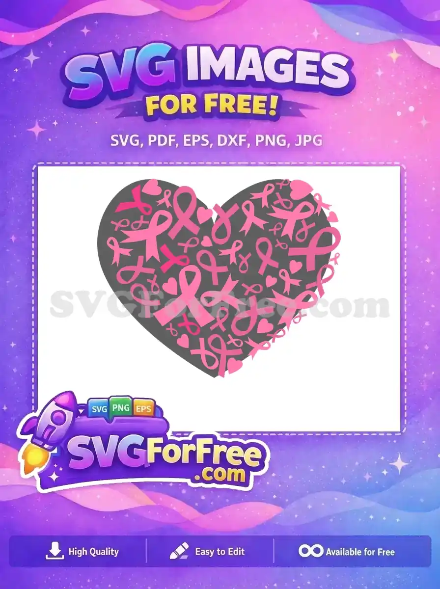 Discover this heartwarming free SVG design, symbolizing hope and support with a beautiful pink ribbon heart. Perfect for awareness projects, it offers a powerful visual message for free.