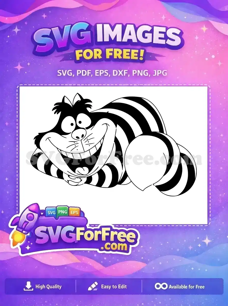 Discover this absolutely free, whimsical Cheshire Cat SVG design! Perfect for adding a touch of playful mystery to your projects.