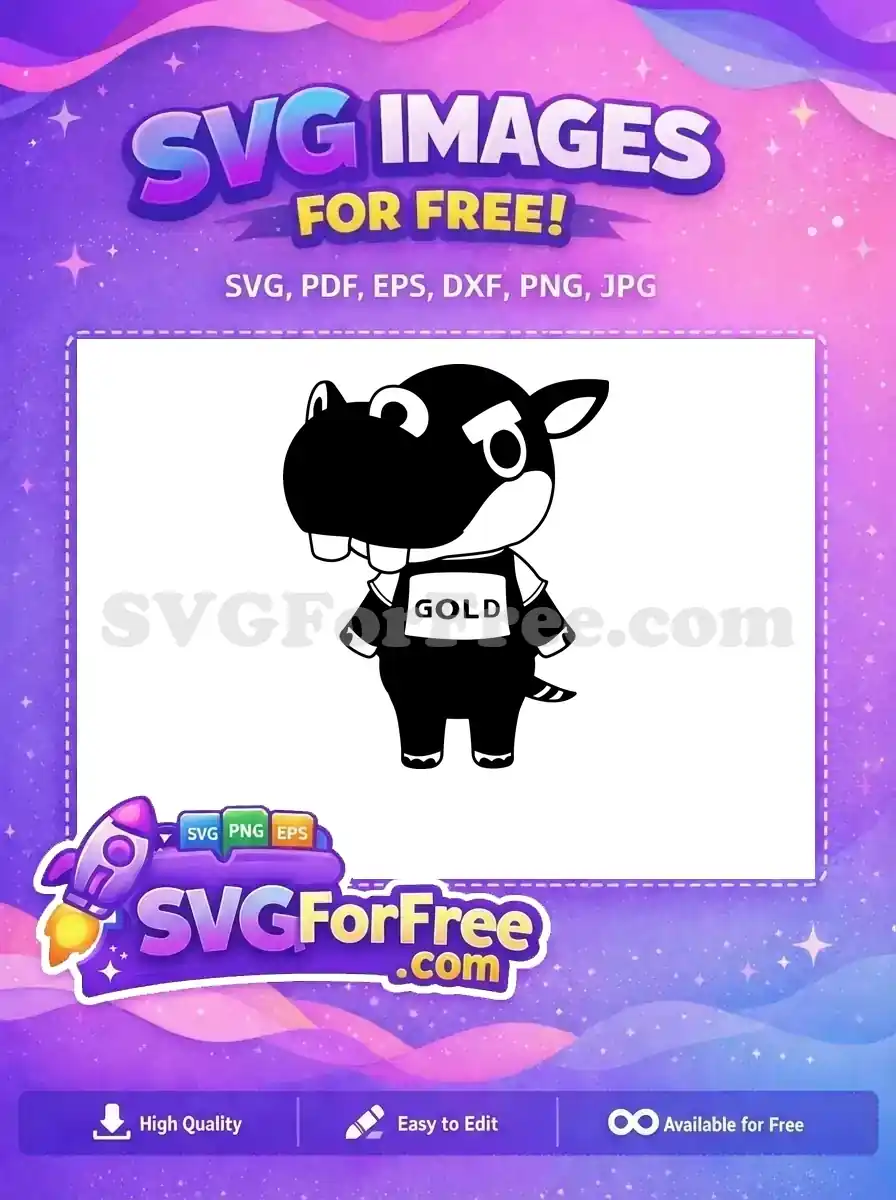 Grab this free cartoon hippo SVG with a ‘GOLD’ shirt for your projects. A charming, free design that adds playful appeal!