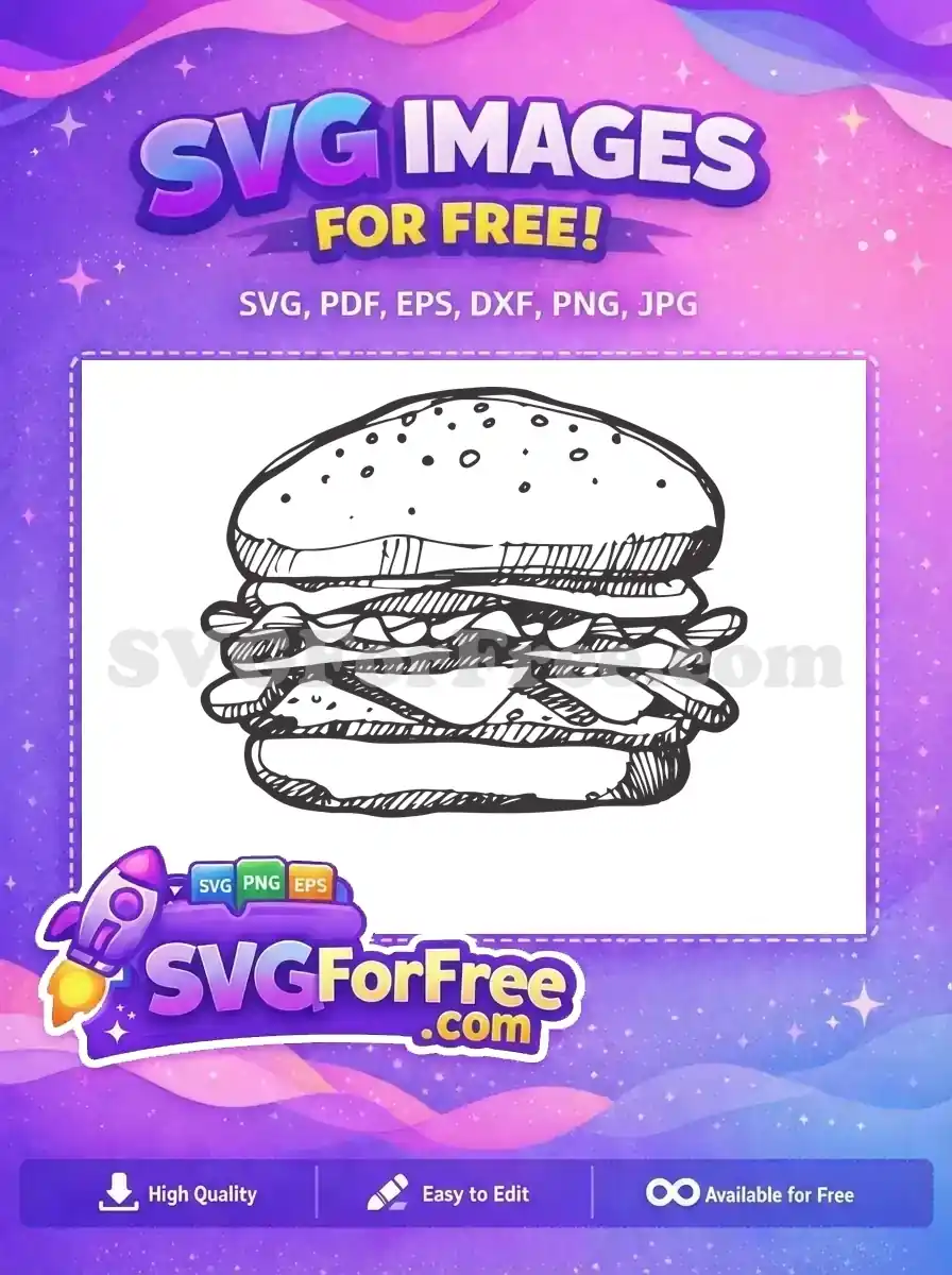 Free Hand-Drawn Burger Free Sesame Seed Bun Line Art Free SVG – Instant Download