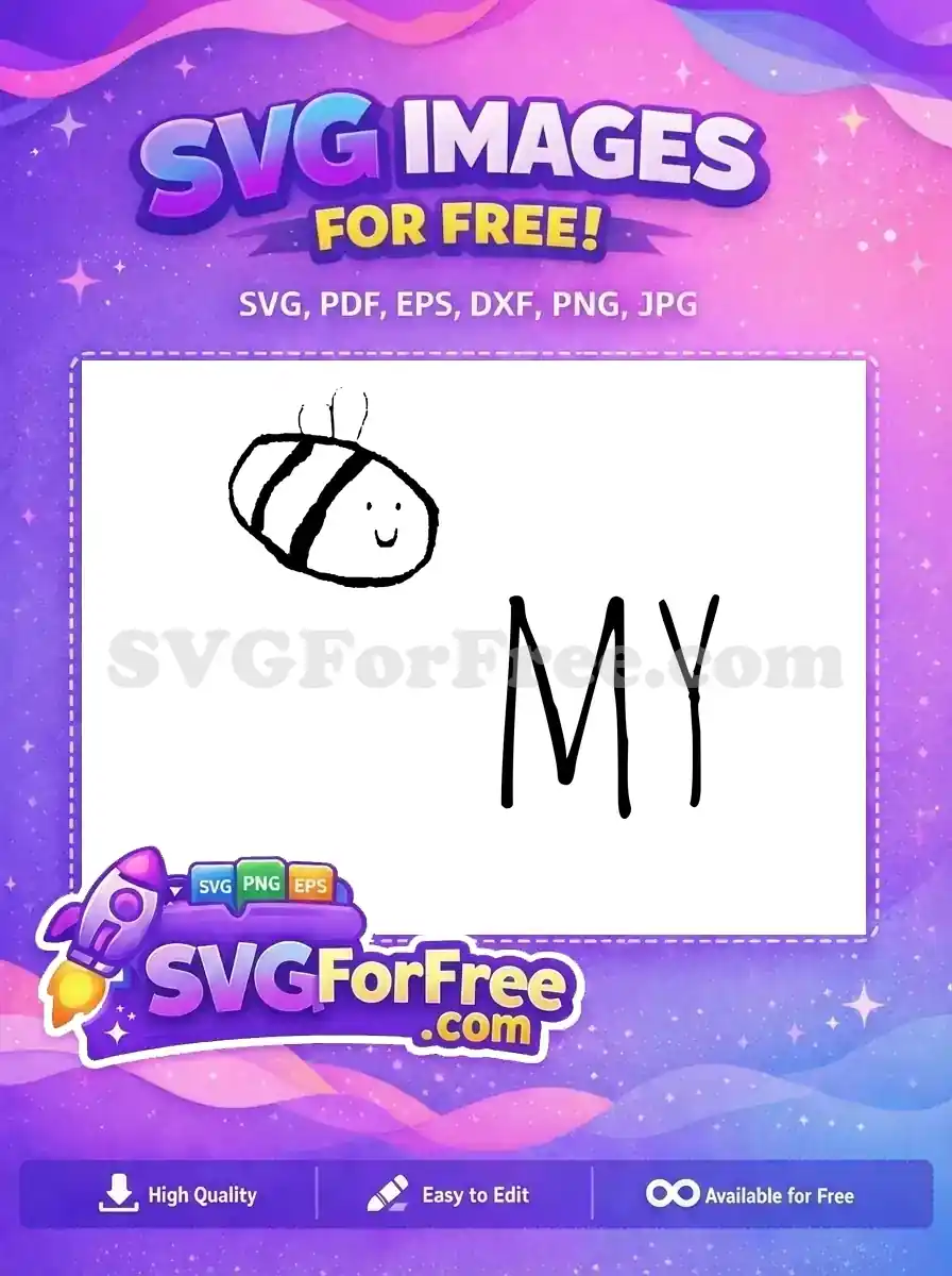 Discover this charming, free hand-drawn bee and ‘MY’ SVG design, perfect for personalizing crafts and projects. Get this unique, free digital art now!