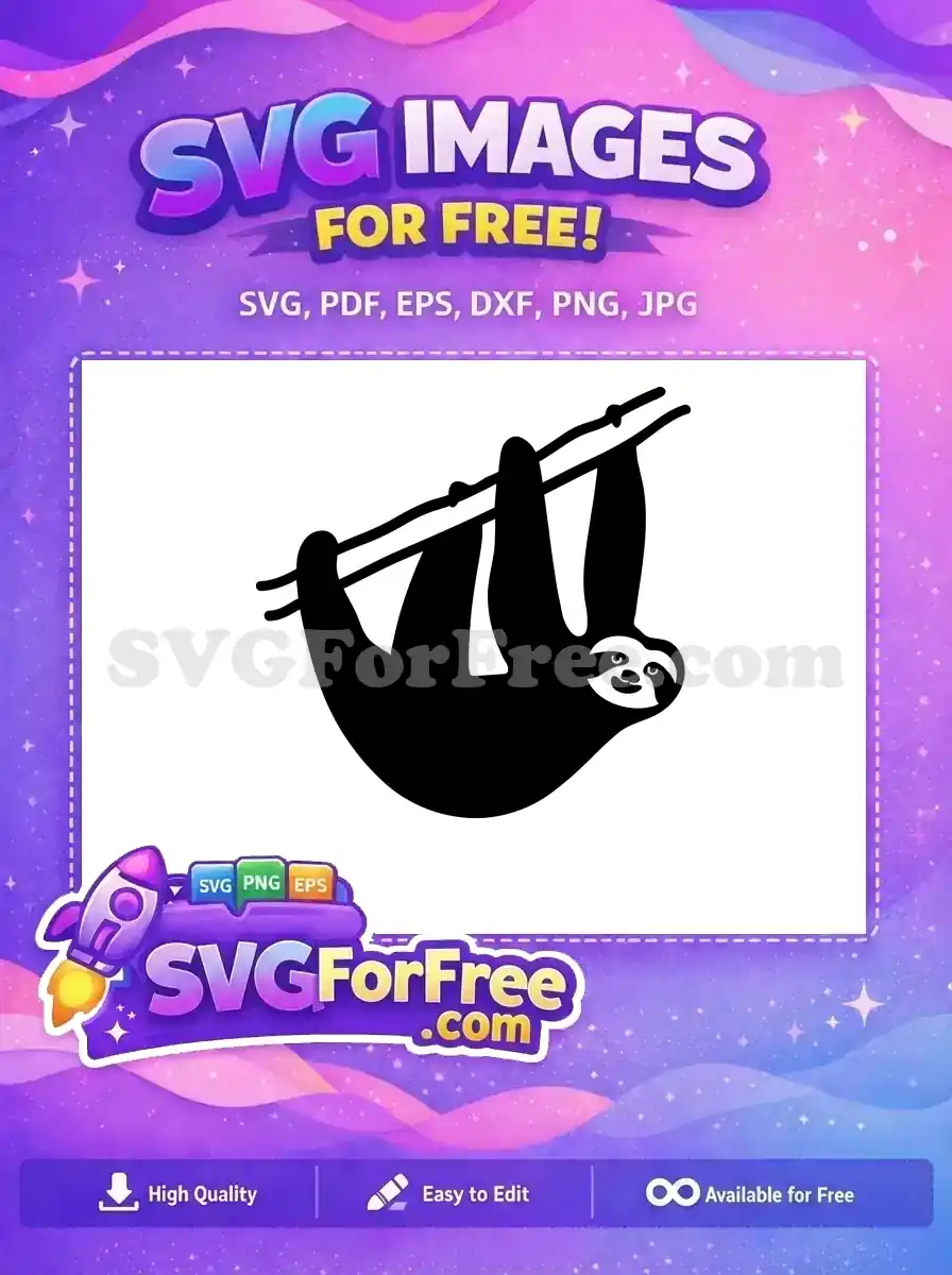 Free Hanging Branch Free Silhouette Cute Sloth Free SVG – Instant Download