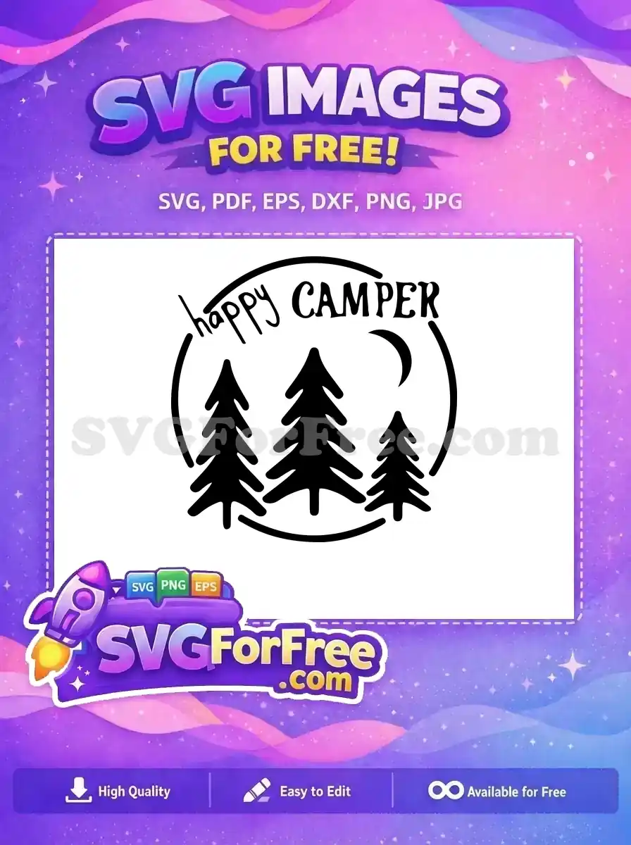 This free “Happy Camper” design is perfect for nature lovers and adventurers, offering a charming, easy-to-use SVG.