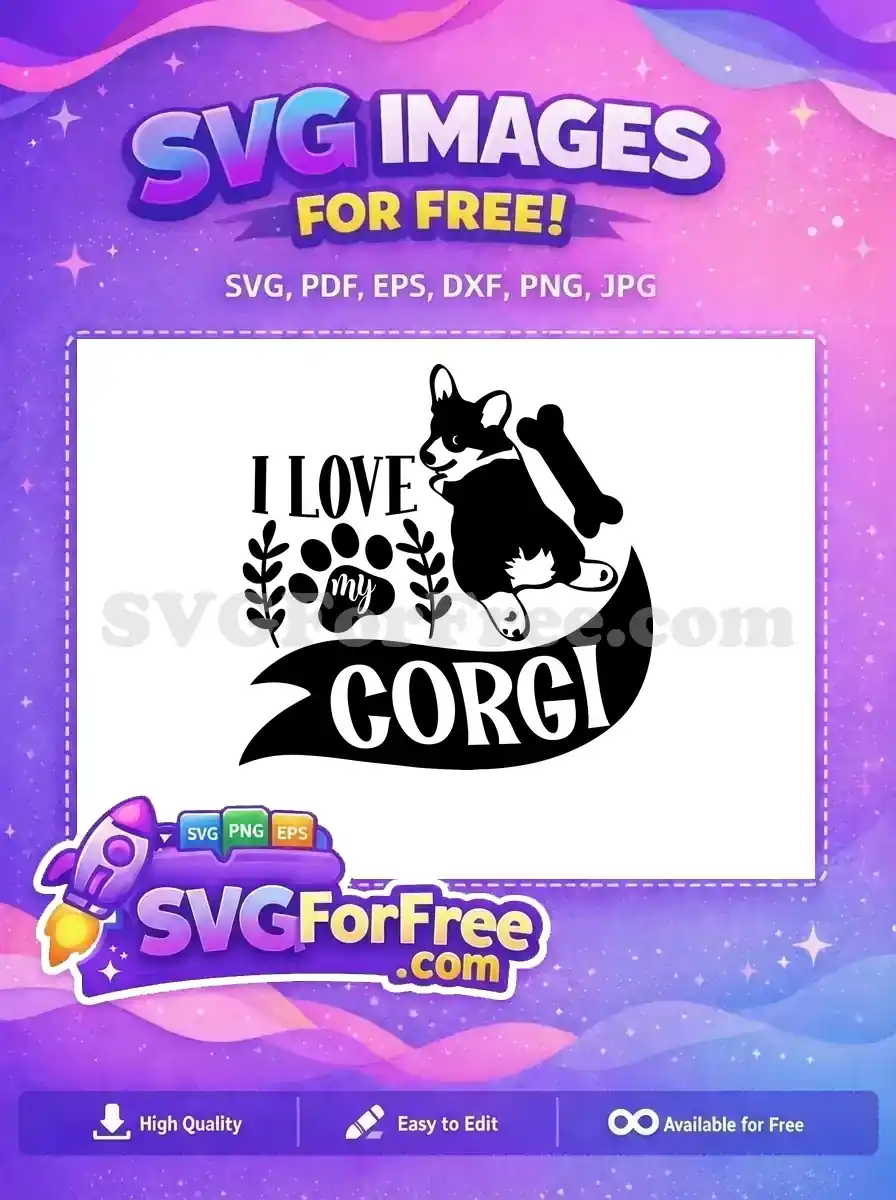 Free Happy Corgi Free Dog Bone Love My Quotes Free SVG – Instant Download