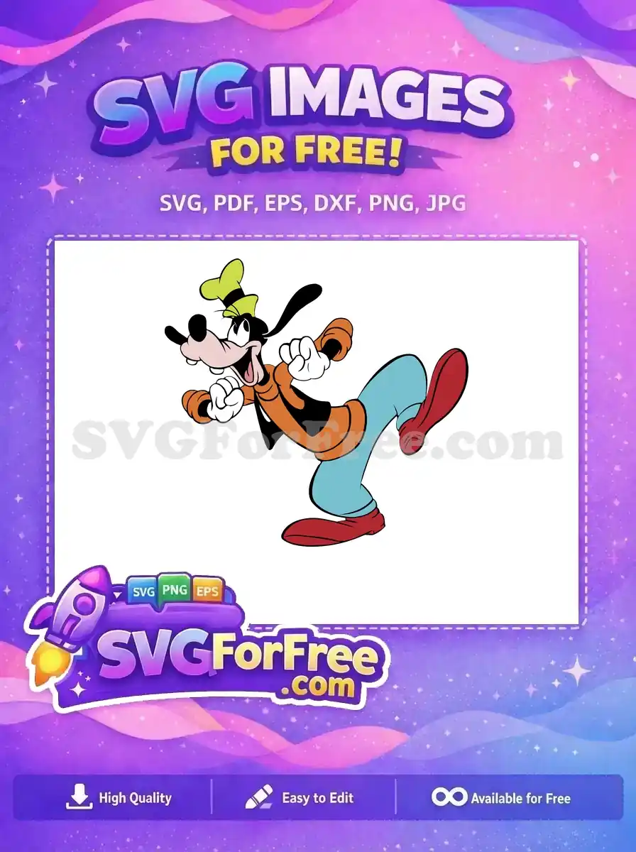 Get this vibrant, free Goofy SVG design, perfect for adding a fun, classic cartoon touch to your projects. Unleash your creativity with this fantastic free vector download today!