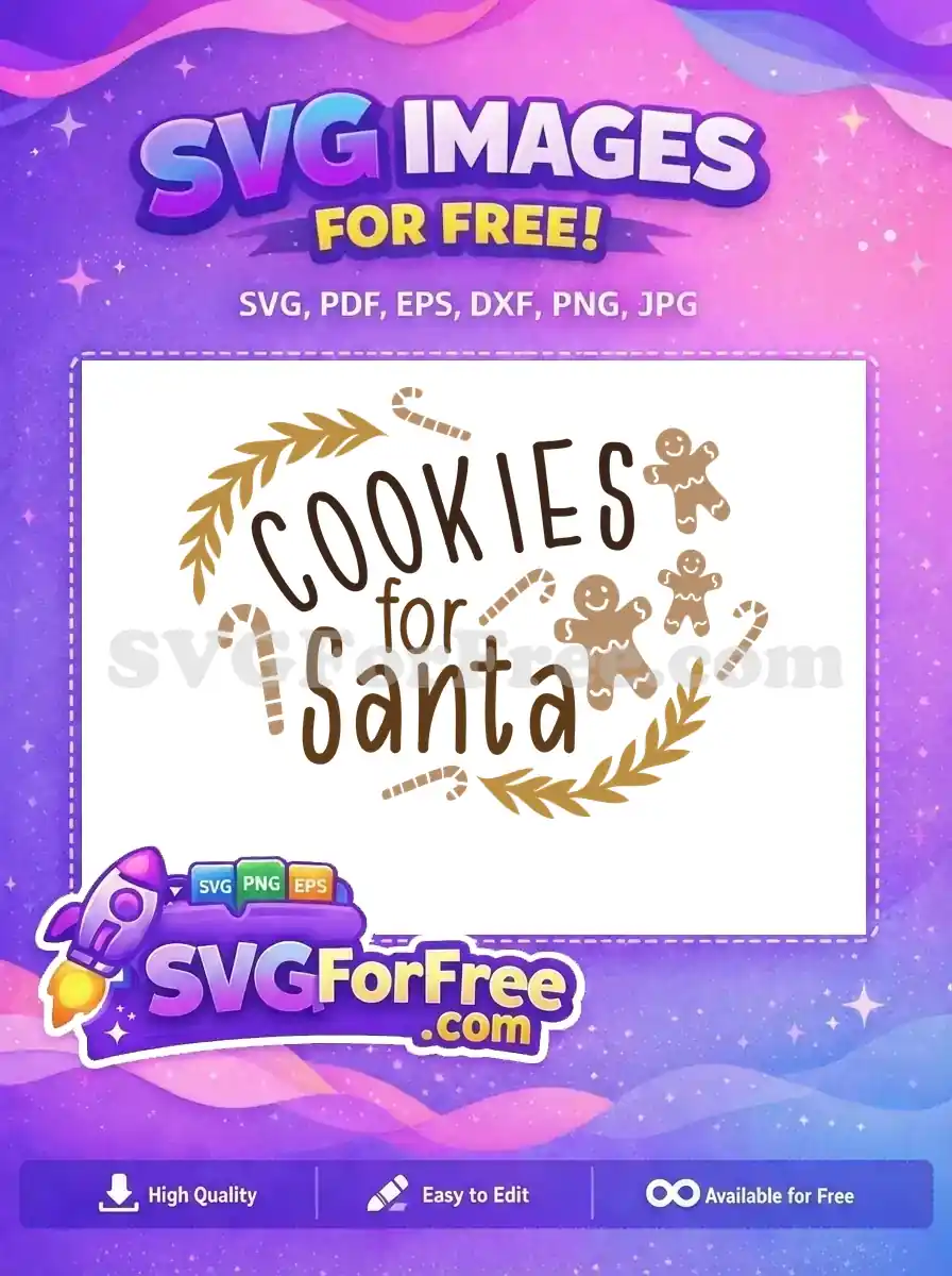 This free ‘Cookies for Santa’ design with gingerbread and candy canes is perfect for holiday-themed crafts.