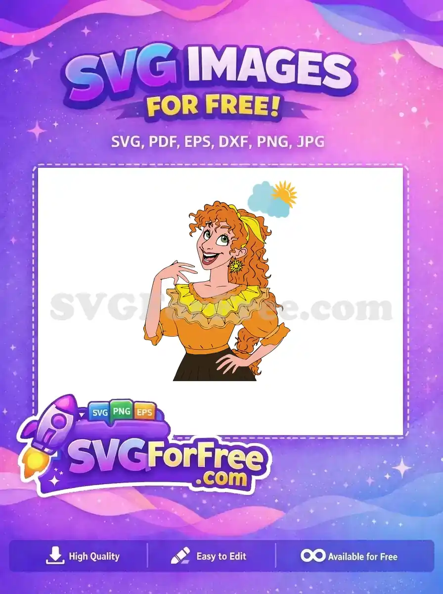 Free Happy Pepa Orange Hair Free Yellow Sun Earring Encanto Disney Free SVG – Instant Download