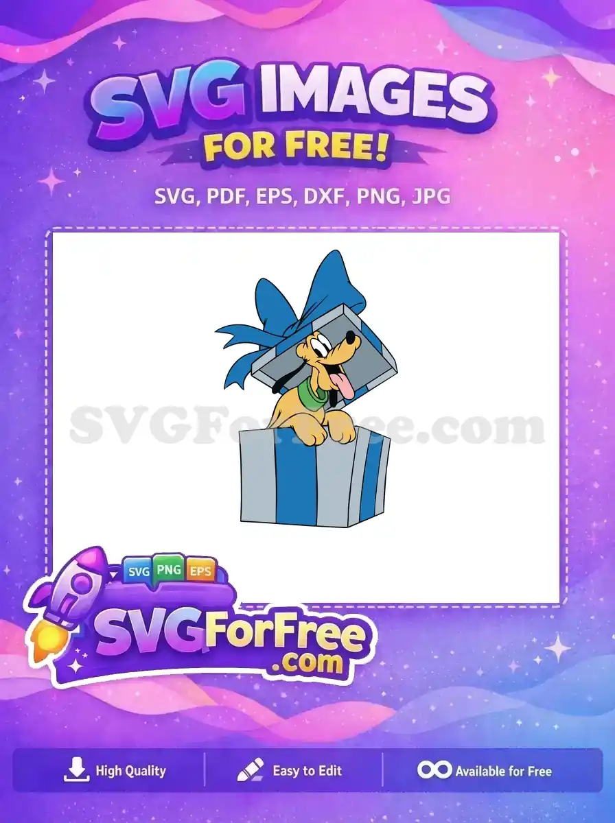 Free Happy Pluto Surprise Free Blue Gift Box Disney Free SVG – Instant Download