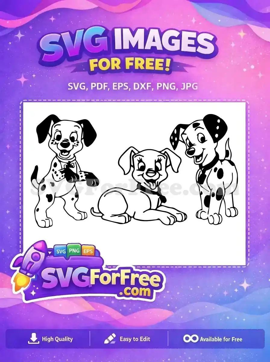 Free Happy Puppies Free Black Spotted 101 Dalmatians Disney Free SVG – Instant Download
