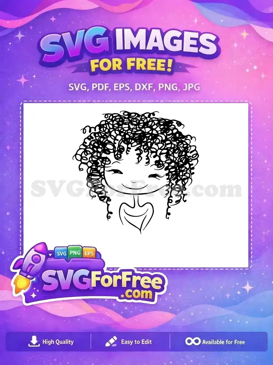 Discover this free, charming doodle girl SVG with whimsical curly hair and a joyful smile, perfect for any project.