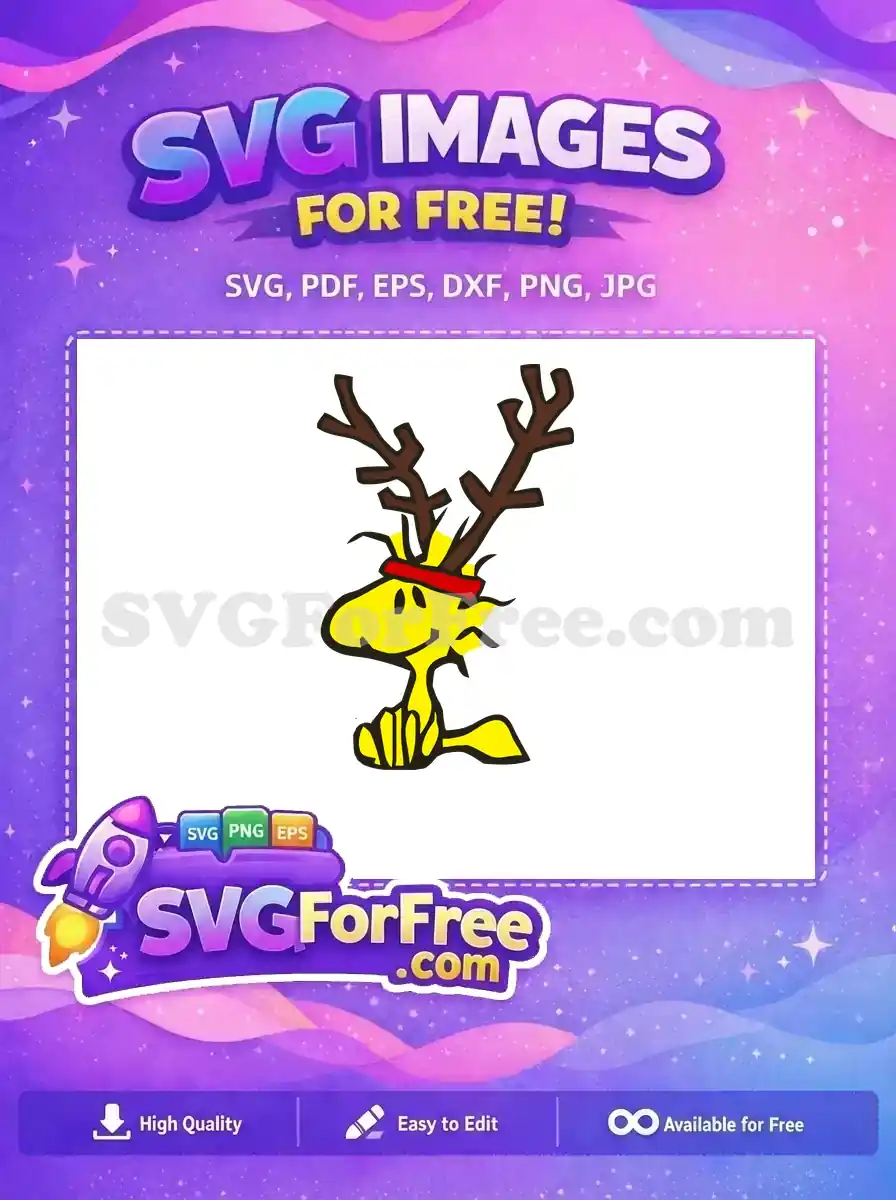 A festive free design of Woodstock with reindeer antlers, perfect for Christmas-themed Peanuts SVG projects.