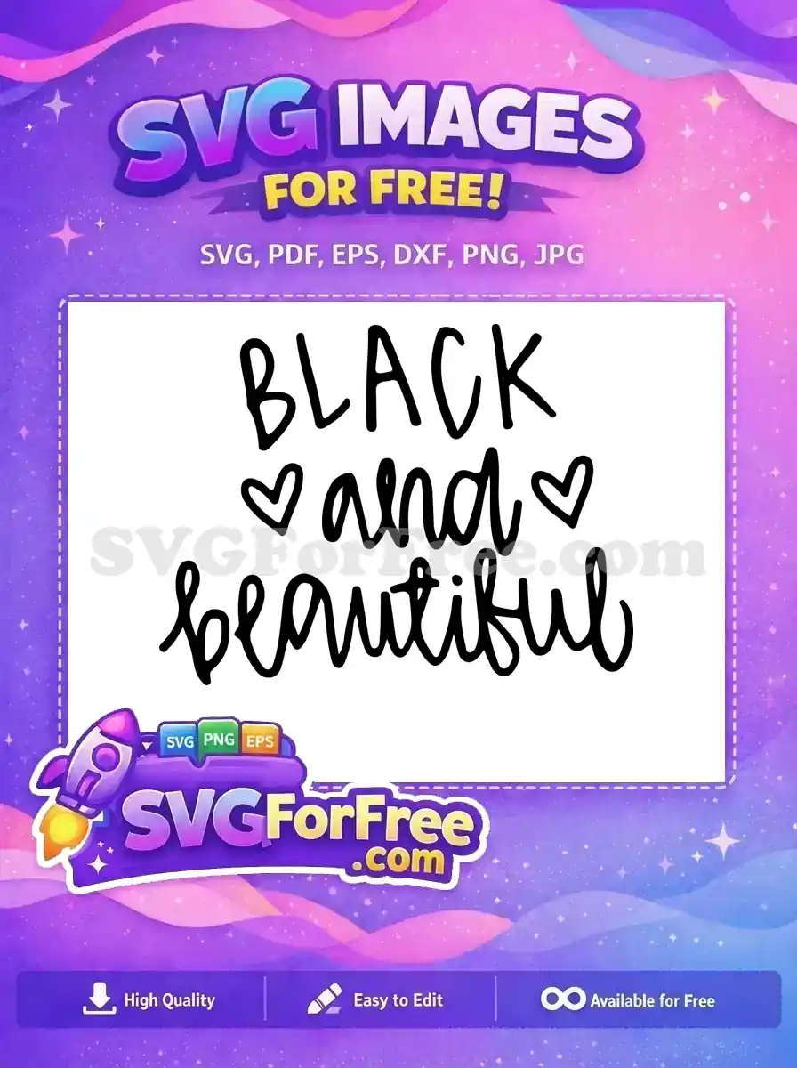 Handwritten script Black and beautiful with hearts, a free vector in classic black.