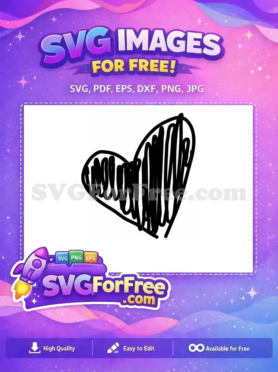 A heart with a heavy, diagonal scribble fill, creating a shaded, textured look. Download this free design.