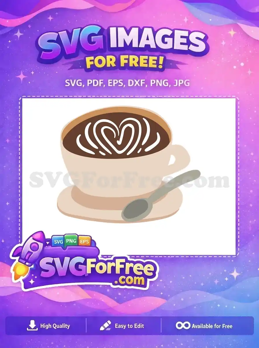 Free Heart Latte Art Free Beige Coffee Cup Coffee Shop Decoration Free SVG – Instant Download