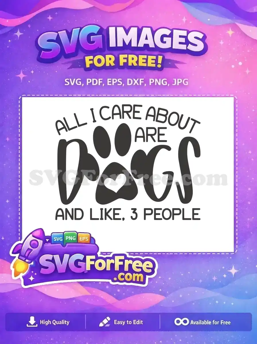 Witty text ‘All I care about are dogs and like 3 people’, a fun free vector.